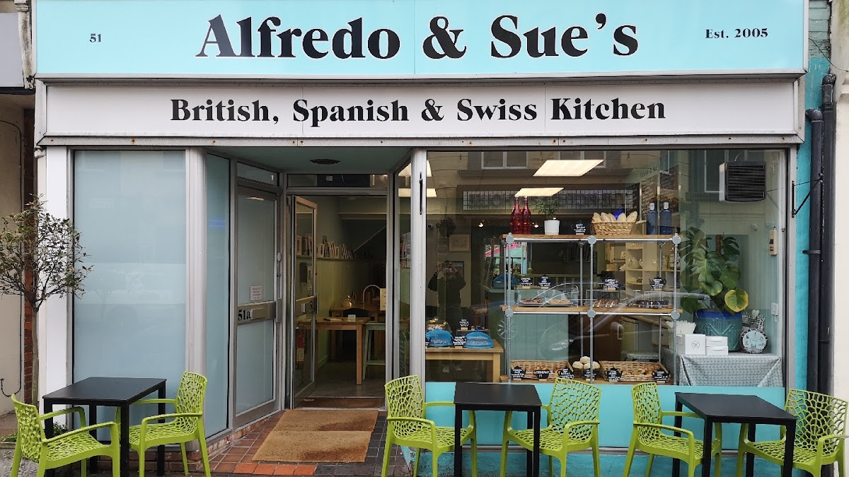 Alfredo and Sue's, located at 51 Western Rd, Bexhill-on-Sea, is a charming eatery that delights patrons with its diverse menu blending Spanish and Swiss flavors. Renowned for its homemade dishes, each meal bursts with fresh, vibrant flavors, from the savory Spanish chicken to the unique courgette and lime cake. Diners rave about the welcoming atmosphere, excellent service, and the generous portion sizes that cater to various tastes, making it a perfect spot for food lovers. Whether you're enjoying a warming soup of the day or indulging in their remarkable cinnamon buns, Alfredo and Sue's promises a delightful culinary experience.