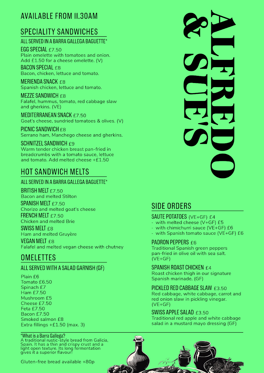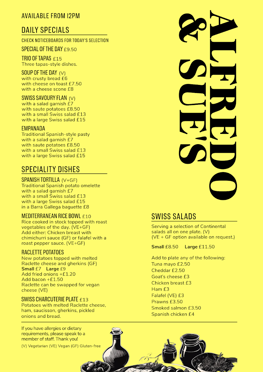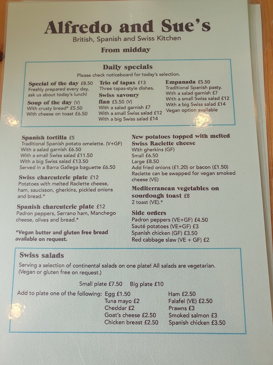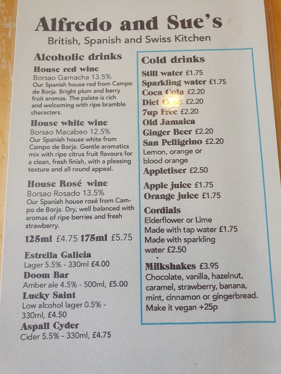 Welcome to Alfredo and Sue's, nestled in the heart of Bexhill-on-Sea at 51 Western Rd. This charming eatery brings together an exciting fusion of Spanish, Swiss, and various international flavors, presenting a menu that delights every palate.